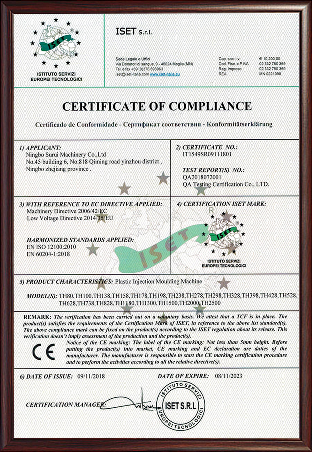 海石牌注塑机生产工厂已通过ISO9001国际质量体系认证